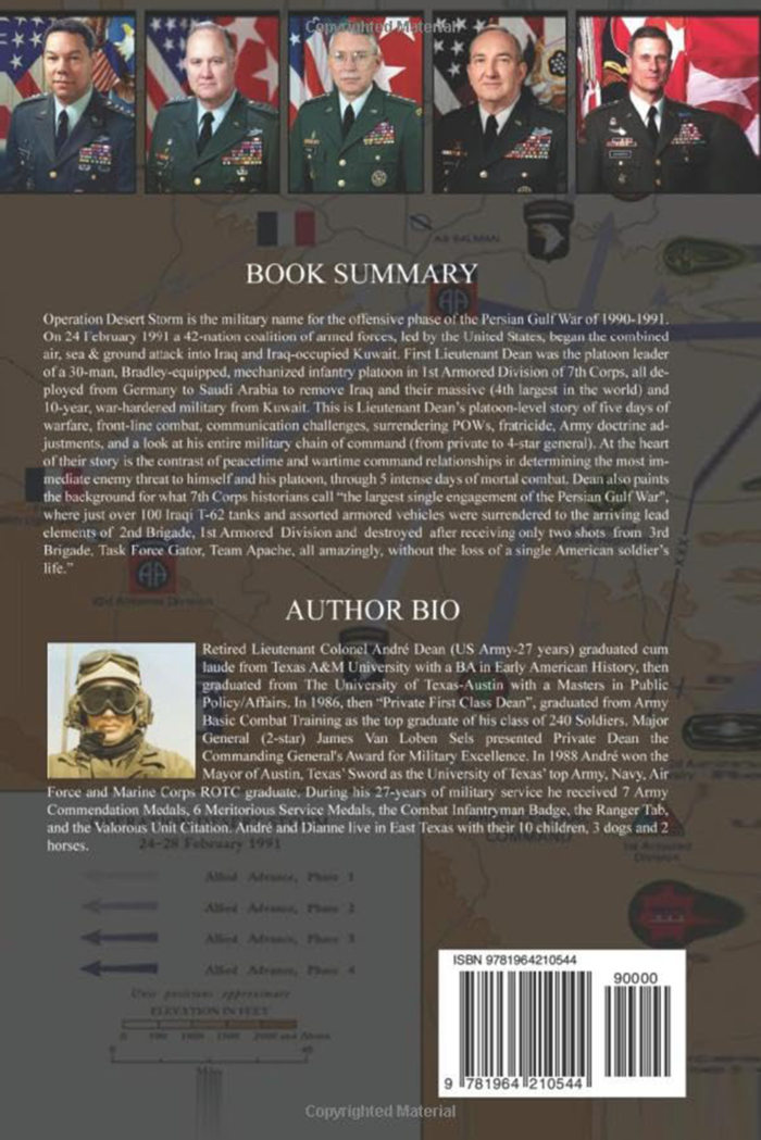 This is Lieutenant André Dean’s platoon-level story of five days of warfare, front-line combat, communication challenges, surrendering POWs, fratricide, Army doctrine adjustments, and a look at his entire military chain of command (from private to 4-star general).